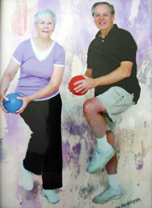 To stay fit mom and dad walked many times a week and became fixtures at the lakeshore park in Canandaigua when the weather permitted. They also became charter members of the Canandaigua YMCA. In particular they participated in a group called the Silver Sneakers, eventually even becoming the Silver Sneakers poster couple, literally. (Note: holding up a copy of the poster
